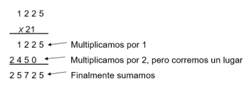 Este es el proceso que hacemos al multiplicar, en binario es mucho mas sencillo porque solo multiplicamos por 0 o por 1, pero no debemos olvidarnos desplazar un lugar por cada dígito que multiplicamos, no importa si es 0 o 1. Luego de multiplicar solo nos quedaría sumar. Entonces dado que la multiplicación por 0 por 1 es trivial, todo se reduce a la suma.