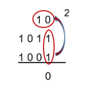 Cuando trabajamos en binario es exactamente lo mismo hay que “pedir prestado”, el problema es que en binario solo hay 0 o 1, si le pido prestado a un 1, este se queda en 0, pero cuanto me esta “dando”?, me esta “dando” una base o sea un 2, de la misma forma que si le pido prestado en decimal, lo que me “presta” es un 10 como se ve en el ejemplo que me quedo 15-9