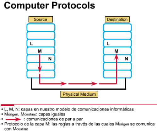 Si analiza esta interacción desde el punto de vista de las capas podrá entender más claramente algunos de los problemas de la comunicación (entre las personas o entre los computadores) y cómo es posible resolver estos problemas.