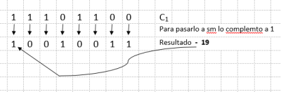 - Paso 2) Convertimos a C2 simplemente sumando 1 al bit menos significativo