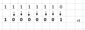 - Si el número a representar es negativo: Se efectua el complemento dígito a dígito de la representación de la magnitud obtenida anteriormente. Veamos como representar en C(1) el número -6(10):