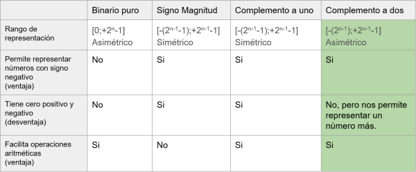 En la actualidad la representación más utilizada en las computadoras es complemento a dos. Sin embargo, primero estudiamos las otras representaciones dado que son más simples y sirven como una buena base para el complemento a dos.